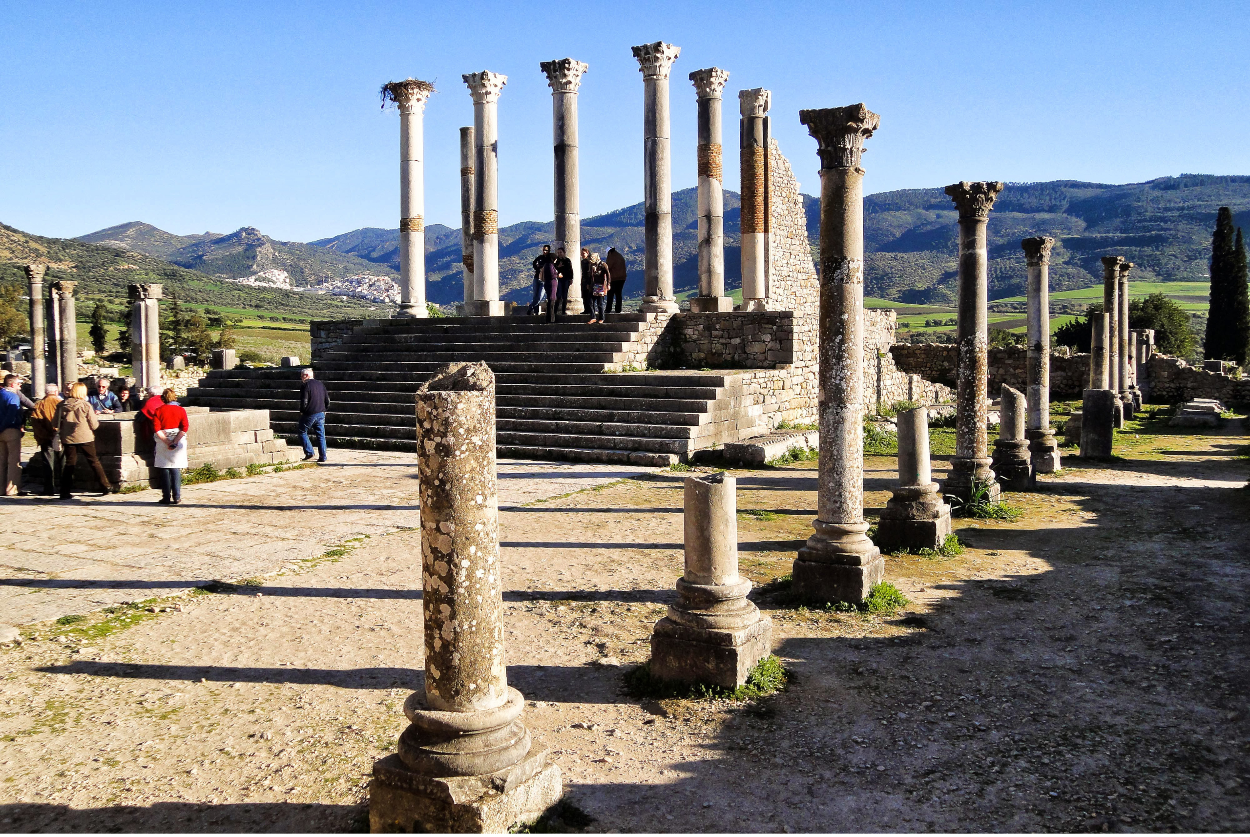 Day 4: Chefchaouen → Volubilis → Meknes → Fes After a final morning stroll in Chefchaouen, we drive to the ancient Roman ruins of Volubilis, a well-preserved UNESCO World Heritage Site. We then continue to the imperial city of Meknes, the Ismaili capital, to visit landmarks like Bab Al-Mansour and the Moulay Ismail Mausoleum. Our day concludes as we arrive in the cultural capital of Fes for an overnight stay in a traditional Riad.